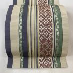 名古屋帯 美品 逸品 八寸名古屋帯 松葉仕立て 草花 縞 クリーム 正絹 中古