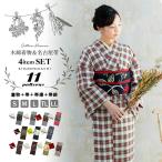 木綿の着物+木綿の名古屋帯+帯揚げ+帯締めの4点セット 木綿着物 単衣 洗える着物 日本製 kimonomachiオリジナル お仕立て上がり S M L TL LL(2L)(メール便不可)