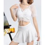 水着 フロント シャーリング シアー フリル パフスリーブ 水着 レディース