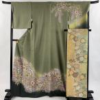 美品 訪問着 身丈168cm 裄丈68cm L 袷 袋帯セット 辻が花 金通し ぼかし 灰緑 正絹 名品 中古