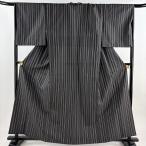 紬 身丈161cm 裄丈67cm M 単衣 縦縞 墨色 正絹 美品 名品 中古