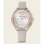 腕時計 「公式」「スワロフスキー」Crystalline aura ウォッチ, スイス製, レザーストラップ, グレー, ローズゴールドトーン仕上げ