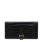 エルメス ベアンスフレ 長財布 ダークブラウン系 ゴールド金具 アリゲーター レディース HERMES 【中古】