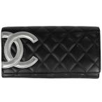シャネル CHANEL カンボンライン 二つ折り 長財布 ココマーク 長財布 レザー ブラック シルバー レディース 中古