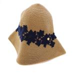 未使用品 アシーナ ニューヨーク Athena New York タグ付き フラワーレース 麦わら帽子 ストローハット ベージュ ネイビー 紺 /KH レディー