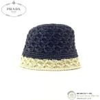 プラダ (PRADA) ラフィア ビコローレ バケット ハット ストロー 麦わら 帽子 Mサイズ 1H0609 ネイビー×アイボリー(新品)
