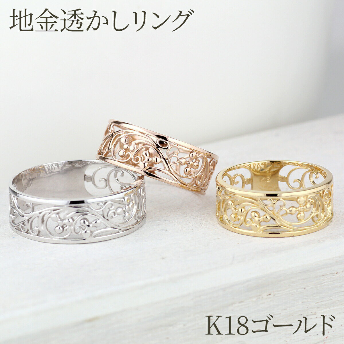 【10%OFF】k18 ゴールド 透かし模様 アンティーク調 地金リング レディース ギフト 誕生日 マリッジ ホワイトデー