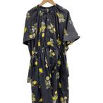UNDERCOVER◆レモン総柄ギャザーワンピ/半袖ワンピース/2/リネン/BLK/総柄/UC1E1702-1