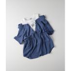 「VIVIAN BLUE」オフショルダー風ドッキングシャツ キッズ 子供服 女の子