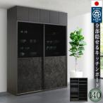 キッチンボード 140cm幅 レンジ台 キッチン収納 日本製 大川家具 完成品 レンジが隠れる 隠せる 食器棚 クリスタルトップガラスの引き戸