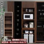 幅62cm レンジボード 62レンジ 食器棚 キッチン収納 レンジ台 スライドカウンター 調理家電収納 縦格子 突板 ウォールナット 天然木 ダークブラウン 大川家具