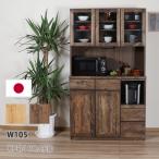 食器棚 キッチンボード 幅105 奥行48 高さ203 完成品 国産 モイス加工 レンジ台 レンジボード 大容量 ソフトクローズ キッチン 収納 木目 代引不可