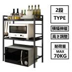 レンジ上ラック レンジラック キッチン 収納 キッチンラック おしゃれ 黒 レンジ上ラック2段 伸縮式(43-65cm) 棚板高さ調整 省スペース耐荷重70kg