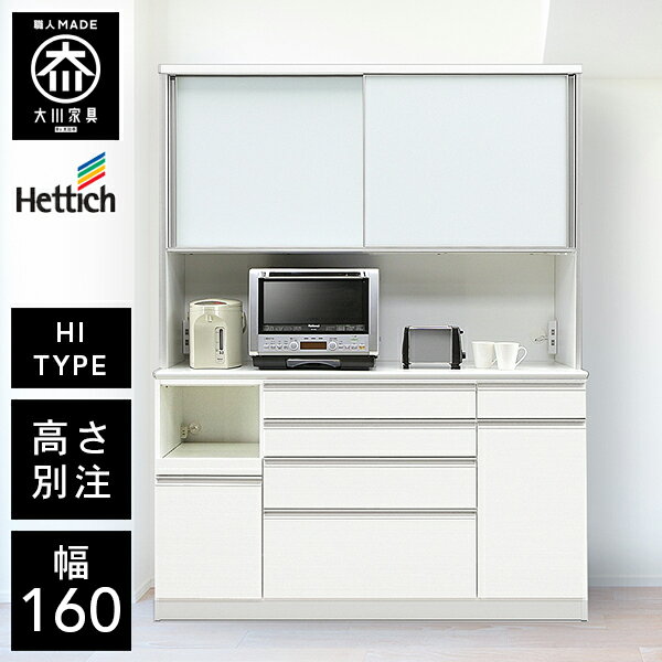 【開梱設置送料無料/受注製作】 HU 高さが選べる ハイカウンター レンジ台 オープンボード 幅160cm レンジ台 完成品 レンジ台 引き戸 食器棚 160幅 大川家具 キッチンボード ダイニングボード 高級