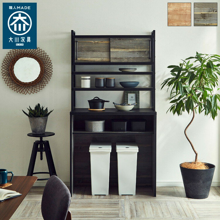 日本製 食器棚 レンジ台 幅90 ゴミ箱 収納 ごみ箱上ラック 国産 大川家具 キッチンボード 引戸 キッチンラック レンジラック 収納棚 キッチン収納 ゴミ箱ラック おしゃれ(代引不可)【送料無料】