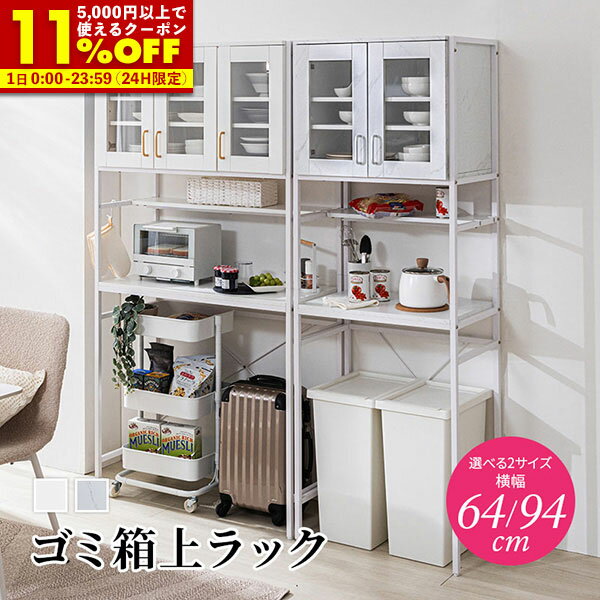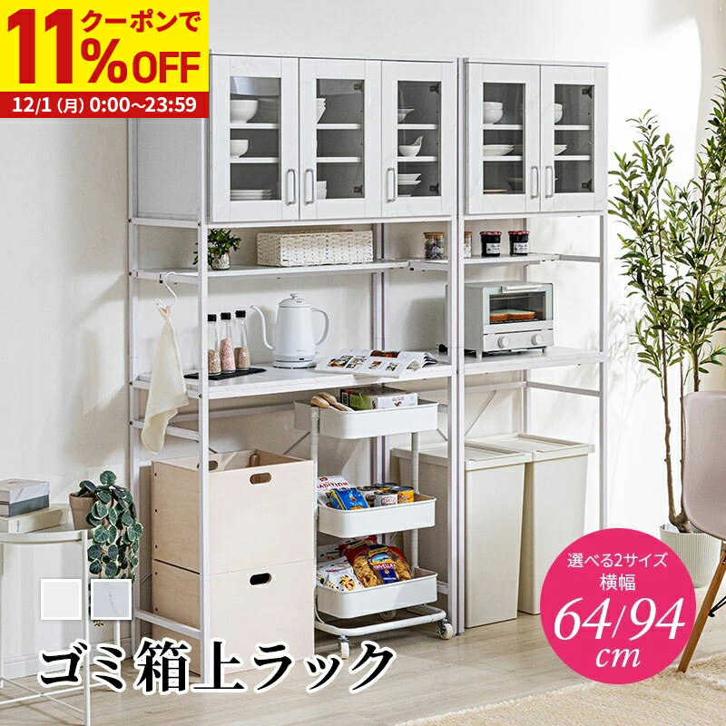 【11%OFFクーポン配布中★12/1に使える】 ゴミ箱上ラック ゴミ箱ラック 幅64cm 幅94cm レンジ台 キッチン収納 おしゃれ 北欧風 キッチンキャビネット レンジボード スチールラック ラック スリム キッチン 収納 棚 キッチンラック