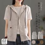 ベスト ジレ レディース ノースリーブ フード リネンベスト 前開き 春夏 綿麻 薄手 羽織り 重ね着 カジュアル ジレベスト おしゃれ 体型カバー