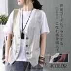 ベスト ジレ レディース ノースリーブ リネンベスト 前開き 春夏 綿麻 薄手 羽織り 重ね着 カジュアル ジレベスト おしゃれ 体型カバー