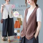 ベスト ジレ レディース 綿麻 夏 ノースリーブ レイヤード 前開き 無地 ジレンチ コットン リネン トップス ショート丈 レディースジレ 春 秋 夏 大きいサイズ