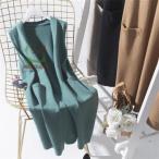 ニットベスト レディース ノースリーブ ロングジレ トレンチベスト ジレンチ トップス ロングベスト ノースリーブ ジレ 秋 冬 前開きベストジレ