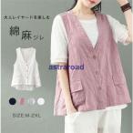 ジレ ベスト レディース ノースリーブ リネン 綿麻 ジレンチ トップス レディース ジレ 春 秋 夏 大きいサイズ 春 レイヤード風 大人可愛い ナチュラル 羽織