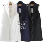 ジレ レディース ジレンチ 前開く ベスト 夏 レディース ベスト ミドルロング 大きいサイズ ジレンチ 黒 トップス ベスト レディース 着痩せ効果 コーディネート