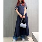 ワンピース レーザーカットドットライン ロングプリーツストラップドレス / ワンピース