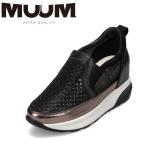 レディース 厚底 スニーカー ムーム MUUM 歩きやすい ローカット ウエッジソール 安定感 ビジュー キラキラ 2E ブラック MM9885 爆買 SALE
