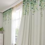 植物柄 カーテン 2枚セット おしゃれ 幅100cm×丈135/178/200cm 3級遮光 形状記憶加工 同色カーテンタッセル付 上部 エバ リーフ柄 ドレープカーテン2枚組