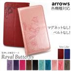 arrows Alpha ケース 手帳型 We2 Plus N 5G Be4 Plus NX RX U 801FJ オーダー ロイヤルバタフライ ベルトなし マグネットなし アローズ 花と蝶