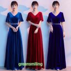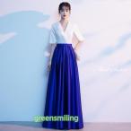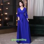 カラードレス ロングドレス パーティードレス ロイヤルブルー Vネック 青 ウェディングドレス ウエディングドレス 結婚式 二次会 花嫁 前撮り 演奏会 発表会
