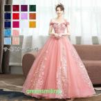 カラードレス プリンセス ロングドレス オフショルダー 演奏会 発表会 結婚式 イブニングドレス 花嫁 二次会 ウェディングドレス プロムドレス 大きいサイズ
