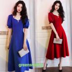 カラードレス ファスナー パーティードレス フォーマル ミディアムドレス ロイヤルブルー レッド 半袖 結婚式 二次会 披露宴 発表会 演奏会 赤 サテン シンプル