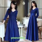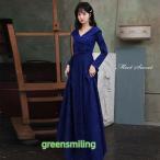 カラードレス ファスナー 長袖 ロイヤルブルー Vネック パーティードレス フォーマル ロングドレス 結婚式 二次会 披露宴 発表会 演奏会 青 スレンダードレス