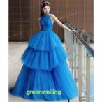 カラードレス プリンセス ロイヤルブルー ホルターネック ウェディングドレス チュール フリル 演奏会 結婚式 二次会 演奏会 発表会 パーティードレス