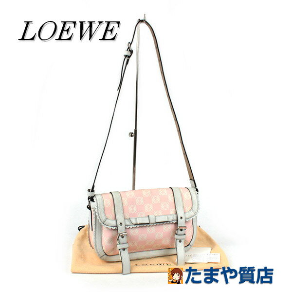 LOEWE ロエベ ショルダーバッグ ピンク 白 アナグラム 70200 【中古】