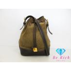ロエベ LOEWE 巾着 ショルダーバッグ カーキ ブラウン 茶 スエード レザー ロゴ 手提げ 肩掛け 鞄 【中古】bk8704