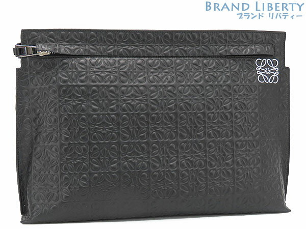 【未使用】ロエベ LOEWE Tポーチ リピートアナグラム フラットポーチ セカンドバッグ クラッチバッグ ハンドバッグ ブラック カーフレザー 107.55.K05 【中古】