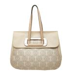 中古 ロエベ トートバッグ アナグラム キャンバス レザー ベージュ ブラウン シルバー金具 ビジネスバッグ