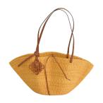 新品同様 LOEWE ロエベ アナグラムロゴ ラフィア かごバッグ トートバッグ ブラウン ナチュラル レディース 古着 中古