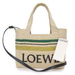 (未使用 展示品)ロエベ LOEWE フォント ストライプ ミディアム 2way ショルダー トートバッグ ラフィア レザー ナチュラル グリーン イエロー A685B61X04