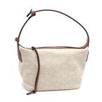 ロエベ キュービィ スモールバッグ A906K75X21 ジャガード カーフレザー ベージュ ブラウン ハンドバッグ アナグラム 茶色 中古 送料無料