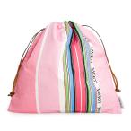 (美品)ロエベ LOEWE ドローストリングポーチ ストライプ L 巾着バッグ キャンバス カーフスキン レザー ピンク マルチカラー 329.51.V83