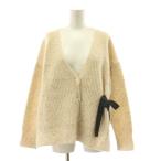 ロシャス ROCHAS ニットカーディガン 長袖 Vネック ウール カシミヤ混 リボン ラメ糸 XS ベージュ 12-158-12-081701