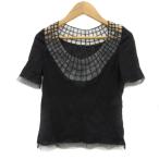 ロシャス ROCHAS ニット カットソー 半袖 ラウンドネック チュール カシミヤ シルク混 34 XS 黒 ブラック /YS3 レディース
