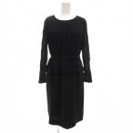 ロシャス ROCHAS 切替ワンピース ひざ丈 長袖 シアー ベルト付き フリル 9 紺 ネイビー /GV レディース