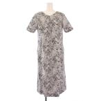 ロシャス ROCHAS ワンピース ひざ丈 半袖 Vネック ストレッチ ペイズリー柄 9 黒 ブラック 白 ホワイト グレー /BB レディース