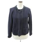 ロシャス ROCHAS ノーカラージャケット 上着 ミドル丈 11 紺 ネイビー スパンコール ビーズ /SM78 ■GY59 レディース