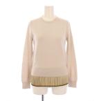 ロシャス ROCHAS ニット 長袖 クルーネック プリーツ 切替 ウール シルク 薄手 40 ピンクグレー /BB レディース