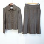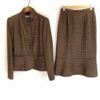 #wnc ロシャス レリアン ROCHAS Leilian スカートスーツ 9 茶色系 スタンドカラー ツイード レディース [858751]